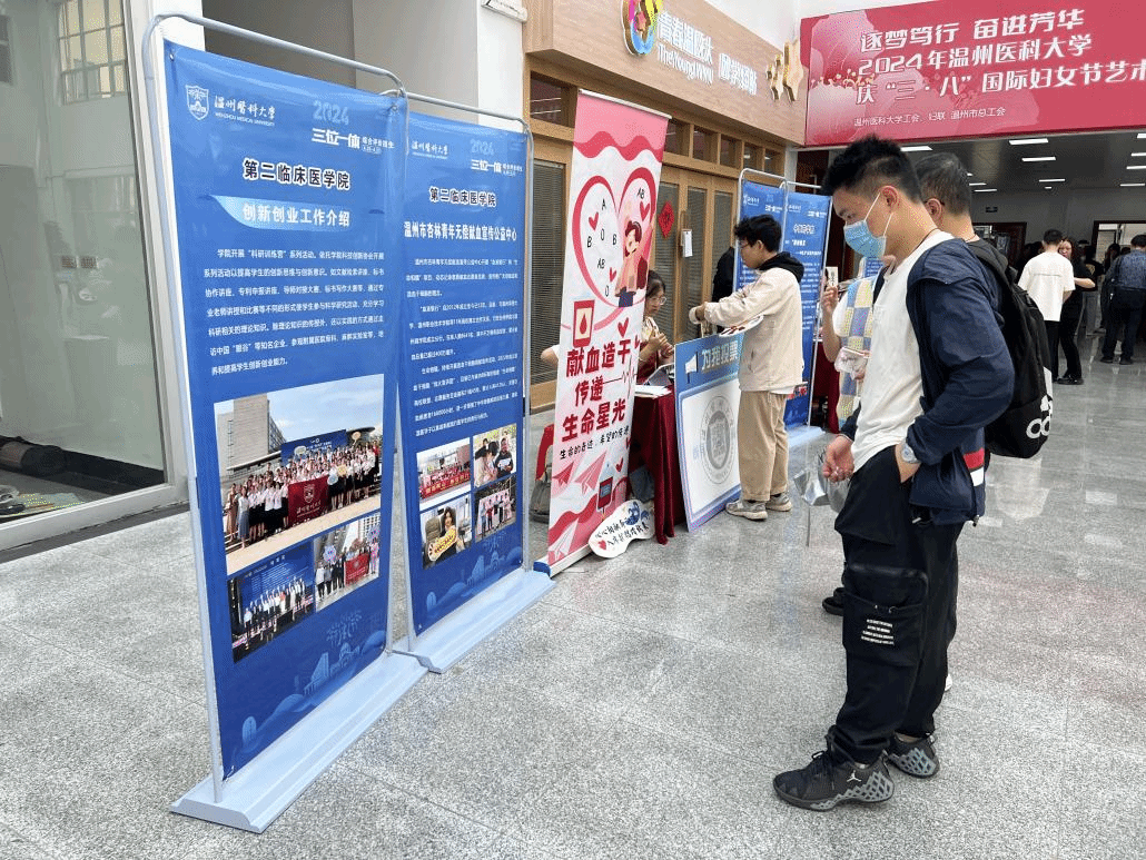 4月20日,在迎来温医大2024年“三位一体”综合评价招生测试的同时,学校全面开放校园参观与游览,在学生活动中心及创业园正在如火如荼地开展一场由博彩娱乐平台 主办的“创有可为,筑梦青春”娱乐平台注册 创新创业成果展暨“三位一体”创业园游园会活动。活动现场气氛热烈,参与人数近2000人,考生和家长们在欢声笑语中发现了校园里除了专业课堂外的另一片创新创业天地。